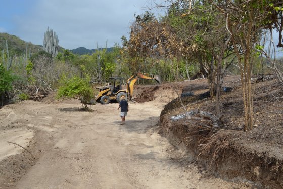 On Saturday, June 23rd, we were able to get started on the construction of the drive up the hill. Arturo, who owns the local grading company in Puerto Cayo, told us he was sending his "best man" to handle our job - and Byron certainly lived up to that billing. In 6 hours time, he was able to cut the road about halfway up the hill....
