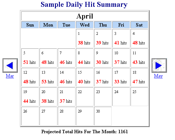 Look at the monthly visit or "hit" totals below: